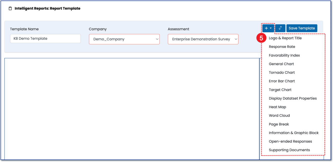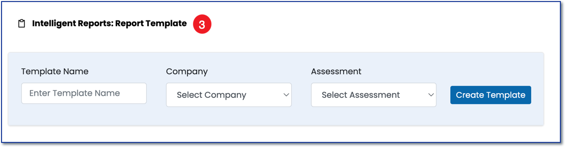 3) On the following page, give your template a name in the text box, select the company whose assessment and data you are working with, and the assessment the data will be coming from, and click the Create Template button.