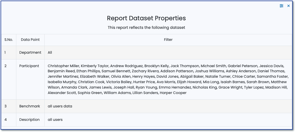 Use this widget to quickly inform readers about the data set the report is based on to help them understand the context and relevance of the findings.
