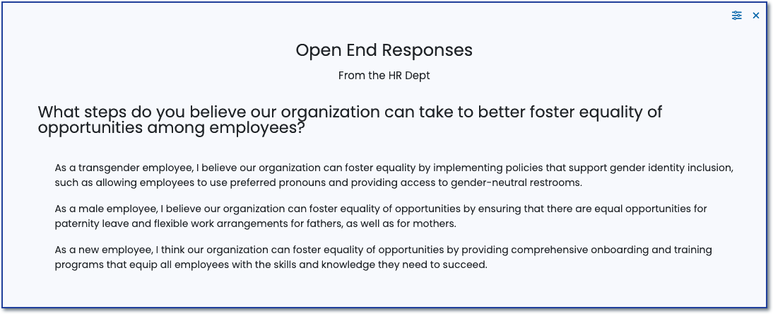 Choose an Open-Ended question within the survey, and choose to display a certain number of participant responses to that question.